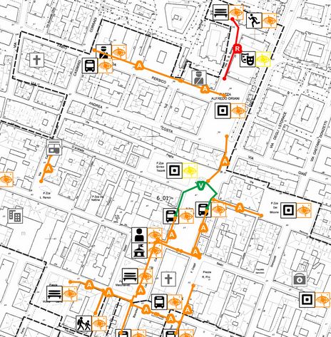 Elementi emergenti, con indicazione del grado di accessibilità, individuati dal piano di eliminazione delle barriere architettoniche P.E.B.A. Il Comune di Genova, in attuazione della legge N 41 del 28/02/1986, con delibera (DGC) n.143 del 14/07/2016 ha dato inizio all’iter per la redazione del Piano di Eliminazione delle Barriere Architettoniche (P.E.B.A.), che si è concluso con la approvazione in Giunta Comunale (DGC) n.23 del 11/02/2021. Il P.E.B.A. di Genova analizza dal punto di vista dell’accessibilità motoria e sensoriale il territorio comunale dividendolo in 94 Ambiti, ossia porzioni di territorio dove maggiormente si concentrano le funzioni pubbliche di rilievo e di interesse per il cittadino, restituendo una mappa con 4 colori a seconda del grado di presenza o assenza di barriere architettoniche.