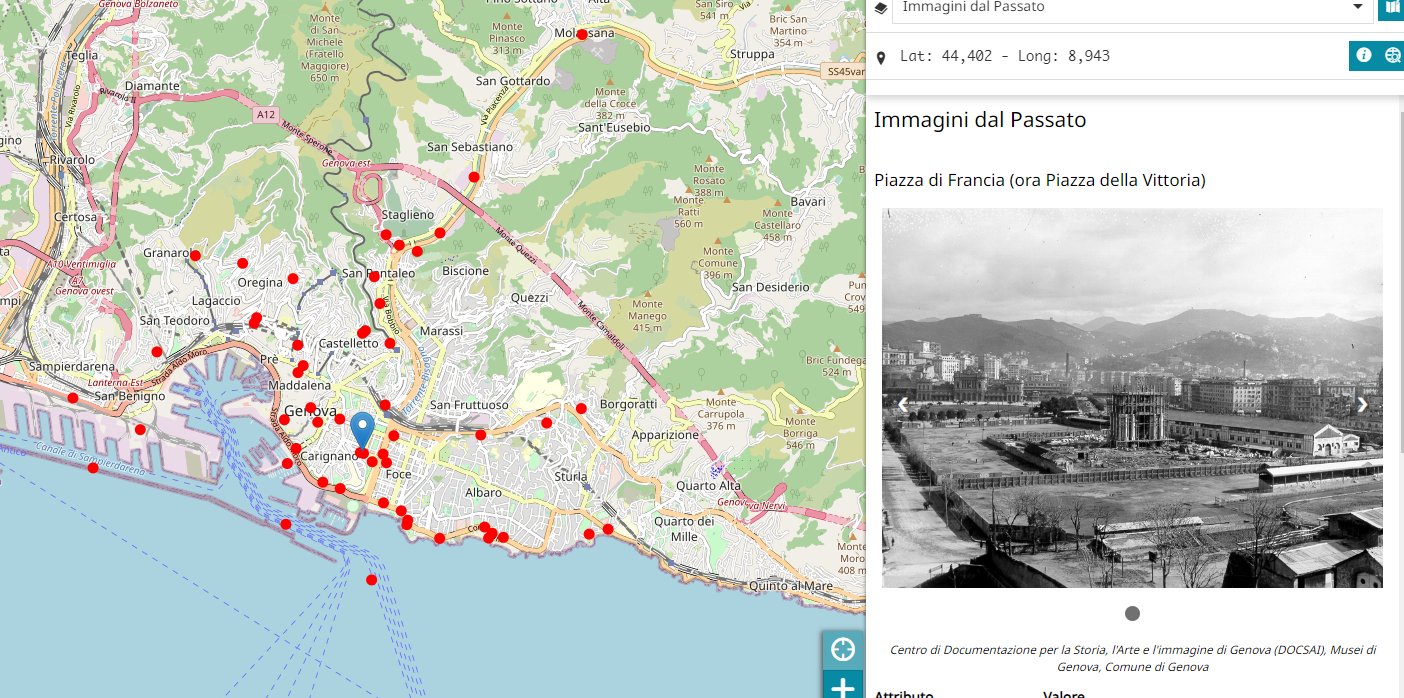 Livello costitutivo del progetto MIAGE relativo a luoghi panoramici storici. Esso è costituito da punti rappresentativi di immagini e fotografie provenienti dal DocSAI e Mu.MA (archivio fotografico Leoni).