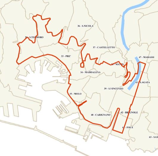 Elementi areali che individuano sul territorio del Comune di Genova i confini delle aree soggette a limitazioni del traffico e interdette ai veicoli maggiormente inquinanti, come stabilito dalle relative ordinanze.